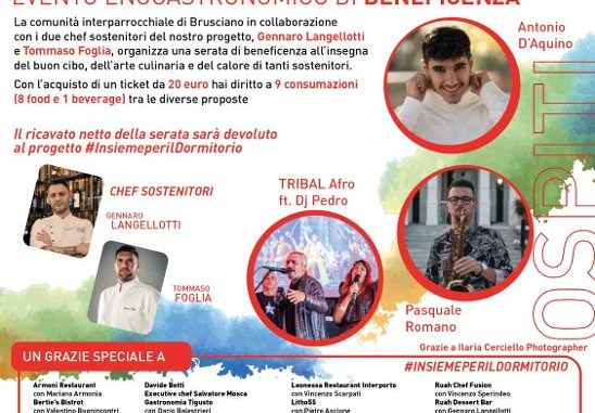 Protagonisti della serata saranno gli chef sostenitori Gennaro Langellotti e Tommaso Foglia, che guideranno un percorso di degustazione all’insegna della buona cucina, della cultura e del calore della solidarietà. Con l’acquisto di un ticket dal costo di 20 euro, i partecipanti avranno diritto a 9 consumazioni (8 food e 1 beverage) tra le varie proposte gastronomiche.