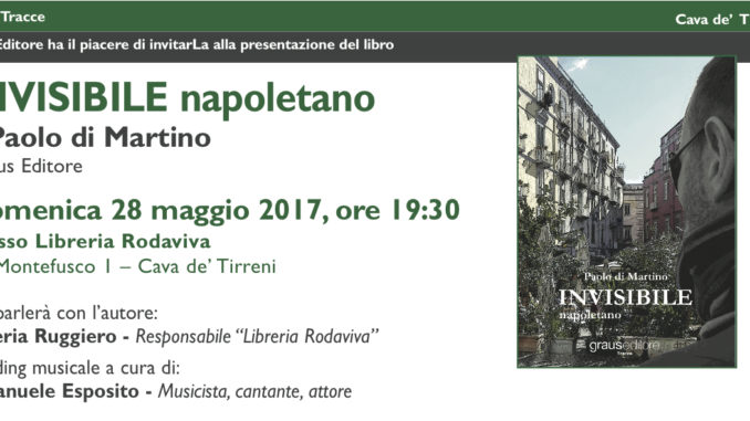 Domenica 28 maggio, alle ore 19.30, presso la Libreria “Rodaviva” di Cava de’ Tirreni, Paolo Di Martino parlerà del suo libro “Invisibile Napoletano” (Graus Editore) con Valeria Ruggiero – Responsabile della libreria di via Montefusco I. Il reading musicale sarà invece curato da Emanuele Esposito – musicista, cantante e attore.