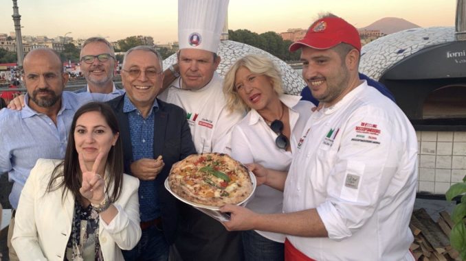 Presentata con successo la Pizza “Scegli Napoli” ideata da Rossopomodoro con i suoi chef Antonio Sorrentino e il Maestro Pizzaiuolo Campione del Mondo Davide Civitiello, che insieme a Teresa Iorio altra campionessa mondiale in più categorie del disco di pasta lievitato ed infornato, unica donna al mondo campione di questo settore professionale, costituiscono il bello dell’Italia e della catena di Rossopomodoro nel mondo della pizza, un nome che qualcuno sostiene sia il primo e più appreso dall’essere umano dopo quello di mamma. La nuova Pizza, come vuole il marchio “Scegli Napoli”, nasce con l’obiettivo di proporre l’acquisto di tutti i prodotti realizzati dalle aziende con sede legale nella città di Napoli e del suo territorio metropolitano. Scegli Napoli, va prodotta con un impasto tradizionale della pizza napoletana, a 24 ore di lievitazione, che steso va farcita con Pomodoro San Marzano, rucola e basilico, olio EVO e fior di latte della penisola sorrentina, dolce con quella vena di fermento che ci dà un pò di piccante, pomodorini del piennolo del Vesuvio e gialli e in uscita tarallo ‘nzogna e pepe sbriciolato. Flavia Sorrentino, Delegata del Sindaco di Napoli all’Autonomia della Città, ha confermato quanto sia importante per il nostro territorio la decisione di portare avanti un progetto di valorizzazione dei nostri prodotti enogastronomici, affermando che partecipano al disegno, 80 realtà imprenditoriali, 50 realtà fanno parte della media e grande distribuzione, mentre 30 sono testimonial eccezionali. Claudio Sebillo e Alessandro Marinacci, organizzatori del Pizza Village, l’happening più grande d’Italia, soddisfatti di questa, come di altre iniziative artefici del successo nel corso di questa IX edizione, che ha superato il record del 2018 di 1.047.000 presenze, hanno anche confermato di voler portare a New York una edizione estera come quella che vive annualmente il Lungomare Caracciolo di Napoli, realizzando anche particolari pacchetti viaggio con il supporto di tour operator, Trenitalia e compagnie aeree. Gennarino Masiello Vicepresidente nazionale di Coldiretti, ricordando l’impegno del loro sodalizio per promuovere i prodotti nostrani attraverso “Campagna Amica”, ha apprezzato anche lui la pizza Scegli Napoli condivisa anche dal Maestro pizzaiolo Enzo Coccia che è stato il primo a portare nel mondo la vera conoscenza ed insegnamento dell’artigianalità di elaborazione della Pizza napoletana autentica. Entusiasti per la nuova pizza e per tutto l’andamento di svolgimento del Pizza Village, anche attraverso la loro partecipazione e attività sviluppata in varie forme ed in vari spazi durante tutto il corso dell’evento, si sono espressi Franco Manna, Clelia Martino e Antonio Sorrentino, rispettivamente Presidente, Development Manager e Executive Chef di Rossopomodoro. Infatti grande affluenza ha registrato l’Area Ospitalità gestita da Rossopomodoro con “Terrazza Ferrari e Ferrarini”, apprezzabilmente curata nell’accoglienza da Fabiano Massa, dove oltre alle 700/800 pizze al giorno che il bravo maestro pizzaiuolo Gennaro Piccolo della sede su via Partenope sempre di Rossopomodoro, omaggiate agli ospiti unitamente bibite a volontà, Coca Cola, Birra Peroni ed acqua Ferrarelle, è stato possibile, per gli invitati, gustare anche il particolarmente eccellente prosciutto cotto “Ferrarini” e la Mozzerella di bufala Campana Dop, Fior di latte e provola della “Latteria Sorrentina”, il tutto accompagnato dal famoso vino Spumante italiano Brut o Rosé “Ferrari”. Per quanto riguarda Ferrari è stato molto apprezzato il proprio stand “Casa Ferrari”, realizzato al fianco di Terrazza Ferrari-Rossopomodoro, dove si sono tenuti numerosi incontri per promuovere la conoscenza ed i valori di una buona pizza a dell’Arte del pizzaiuolo. Quest’anno il Pizza Village ha avuto la partecipazione di 45 pizzerie, più quella senza Glutine di Marco Amoriello, tre volte campione mondiale in questa specialità per celiaci, che sul Lungomare Caracciolo si sono impegnate a promuovere, molte attraverso gli stessi titolari e grandi maestri pizzaiuoli, l’autentica Pizza Napoletana elaborata secondo il disciplinare di produzione della Specialità Garantita, l’STG pubblicato sulla G.U. della R.I. del 9-3-2010 e con l’Arte del Pizzaiuolo Napoletano che ha ottenuto il riconoscimento dell’Unesco come Bene Immateriale dell’Umanità. Rossopomodoro, che ha gestito brillantemente l’accoglienza in Terrazza Ferrari, ha anche realizzato un mega proprio spazio, a termine della fila di pizzerie presenti, dove Clelia Martino e gli chef Antonio Sorrentino ed Enzo De Angelis, insieme ad altri maestri pizzaioli, non solo di Rossopomodoro, per 10 giorni attraverso 19 lezioni, due lezioni al girono di 1 ora e 30 cadauna, alle 18:30 e 21:00, hanno insegnato ad appassionati come produrre al meglio una buona pizza consegnando a termine 40 attestati ai partecipanti invitati a seguire il mondo pizza. Ad ogni lezione hanno partecipato 20 allievi che hanno ricevuto insegnamenti in 3 step sul come impastare farina acqua sale e lievito, passando al secondo che prevede la stagliatura con il fare 6 piccoli panetti per poi passare alla terza fase con la stesura della pizza, il condimento ed il forno. Partiti con il taglio del nastro di Casa Rossopomodoro, progetto nato 6 anni addietro su idea di Clelia Martino, da sempre affiancata da Antonio Sorrentino ed Enzo De Angelis, con la presenza del Gran Maestro pizzaiuolo Gino Sorbillo, molto partecipe alla manifestazione del Pizza Village, anche perché recentemente nominato dall’ANDI (Associazione Nazionale Doc Italy) in Campidoglio a Roma, Ambasciatore Doc Italy della Pizza Napoletana nel mondo, si sono avvicendati numerosi grandi maestri come Valentino Libro ed altri che hanno offerto le loro diversità, curiosità ed esperienze, in un clima di divertimento ed allegria. Questo spazio formativo realizzato dalla M