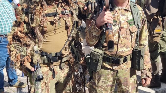 Con mia immensa sorpresa e gioia scopro che l’alpino in sfilata coperto dalla ghillie suit è un cittadino di Baiano, un amico a me caro: Antonio Picciocchi.