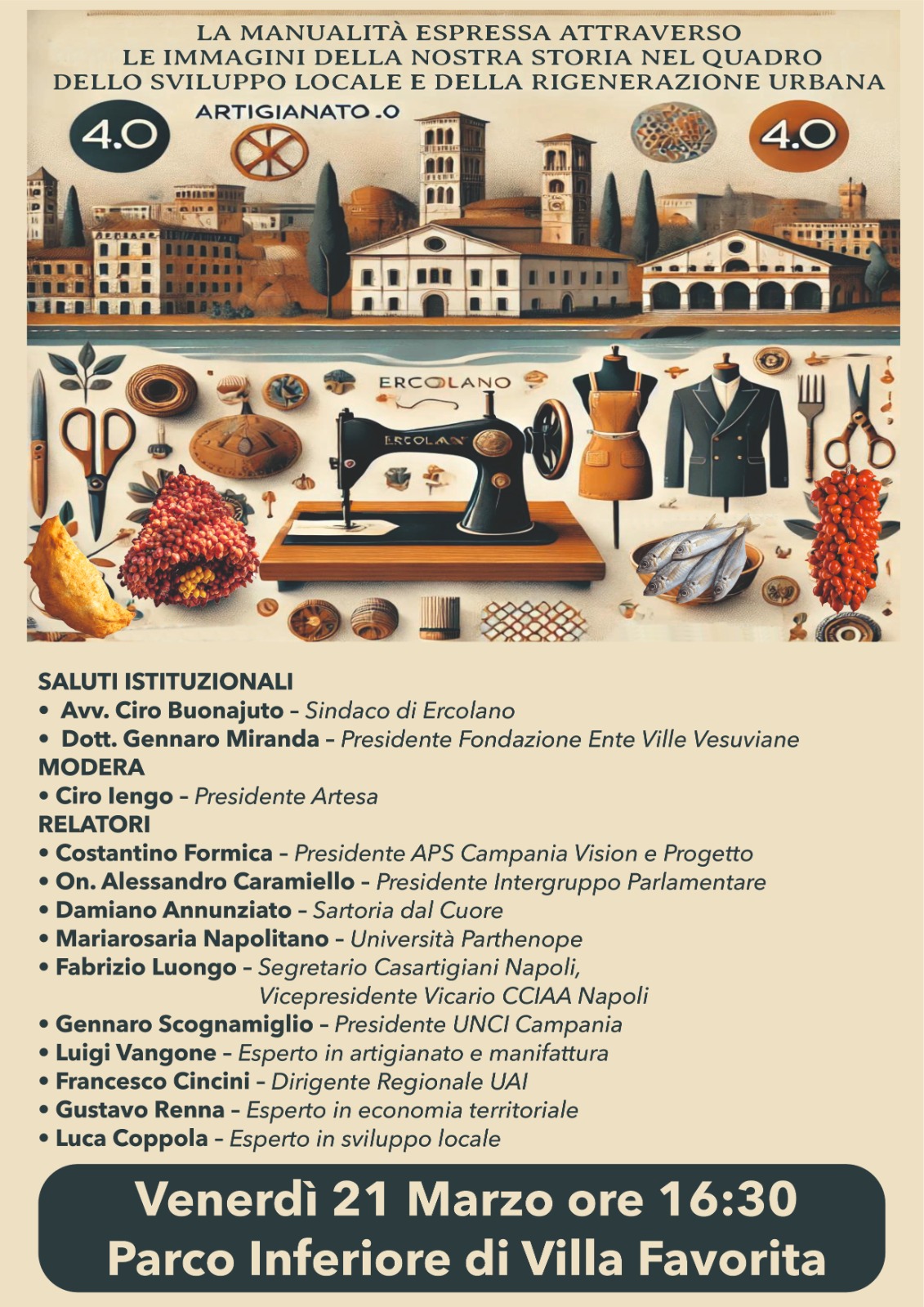 Ai nastri di partenza “Viviamo il turismo, la città in mostra”, un viaggio emozionale attraverso la cultura, la tradizione e le bellezze di Ercolano. La manifestazione, ideata da Ciro Iengo e promossa da Artesa e altre realtà territoriali, prenderà il via il 21 marzo, alle ore 16,00 presso il parco inferiore di Villa Favorita e ci accompagnerà per tutto il 2025, trasformando la città in un museo immersivo a cielo aperto, in grado di coinvolgere cittadini e turisti in un’esperienza unica.