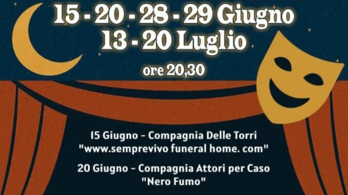 La compagnia ’O Triato inaugura la stagione teatrale estiva “Proscenio sotto le Stelle” ovvero la sua II Rassegna Teatrale, che si svolgerà presso la Casa Canonica di Petruro di Forino (AV). Le Date degli spettacoli:15, 20, 28, 29 Giugno 13, 20 Luglio.