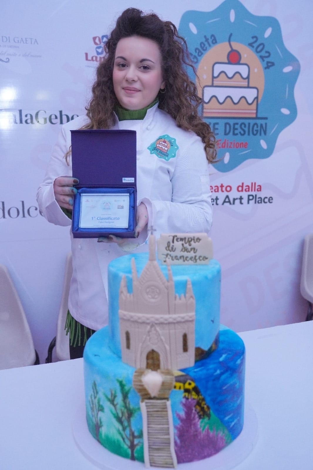Tra le nove concorrenti in gara ,ha primeggiato tra tutte Ana Maria Esposito, di Marigliano(nota su Instagram : LE TORTE DI ANA ),ha sempre coltivato la passione per i dolci e ha iniziato da autodidatta, passa a frequentare corsi mirati a crearsi le basi della pasticceria che ne affinano le conoscenze.Aggiudicandosi il 1 posto della 1 Edizione ,con la realizzazione della sua torta ispirata al Tempio di San Francesco , uno dei monumenti più importanti di Gaeta , curando minuziosamente tutti i dettagli e applicando più tecniche nella realizzazione; tra cui la lavorazione del monumento in pasta di zucchero accompagnata da pennellate di micro pittura precise del paesaggio naturalistico circostante ,ha catturato subito l’occhio critico dei giurati così vincendo e ricevendo Targa D’onore,Attestato di partecipazione e un corso di cake designer e pasticcieria presso la scuola Dolce &Salato di Maddaloni.