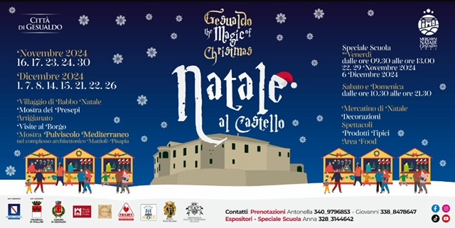 Gesualdo: tutto pronto ai nastri di partenza per la terza edizione dei mercatini di Natale. Per questa edizione davvero speciale l’amministrazione comunale ha voluto fare le cose fatte per bene e curare al massimo ogni dettaglio. I mercatini di Natale sono ormai un appuntamento fisso, consolidato e tanto atteso dai gesualdini che riceveranno tantissimi ospiti dai paesi limitrofi ma anche da fuori provincia e fuori regione. Tantissime sono le prenotazioni per vedere il nuovo look del castello del principe Gesualdo addobbato come non mai per l’evento che avrà inizio il 16 novembre e si svolgerà tutti i sabato e le domeniche fino al 26 dicembre con ingressi dalle ore 9:30. Il castello si prepara ad ospitare grandi e piccini, scuole, organizzazioni e chiunque voglia tuffarsi nella magia del Natale e vivere un atmosfera davvero incantata. Si tratta di un evento fortemente voluto e sostenuto dall’amministrazione comunale di Gesualdo. In particolare, la consigliera delegata alle attività produttive Antonella Solomitache ha dichiarato: “ci mettiamo davvero tanto entusiasmo, energia, lavoro, passione, testa e cuore per questo evento del Natale. Ci saranno tante novità che i gesualdini ed i visitatori potranno vivere quest’anno al castello di Gesualdo. E’ stato un lavoro di squadra di tutta l’amministrazione. Ho il piacere di coordinare questo evento e lo faccio davvero con molta energia, ci metto tutta me stessa e la voglia di regalare ai visitatori un momento di magia per il prossimo Natale”. Soddisfazione anche da parte del sindaco di Gesualdo l’Avv. Domenico Forgione: “la continuità degli eventi, la valorizzazione del nostro patrimonio artistico, culturale e storico passa anche attraverso questi eventi che riguardano il Natale ma che sono poi l’occasione per far conoscere ancora meglio il nostro borgo. Ci stiamo impegnando su questo fronte e sono molto soddisfatto della sinergia che tutti gli amministratori ci stanno dimostrando per questa occasione e per il lavoro di squadra che stanno facendo. Consentitemi di dire che i gesualdini possono essere orgogliosi di questo evento”. Fiore all’occhiello di questo Natale 2024 al borgo di Gesualdo saranno le visite guidate al centro storico e la mostra “Pulviscolo mediterraneo”. Grazie a questa mostra di quadri, sculture e fotografie rivivranno appieno i palazzi storici Pisapia e Mattioli che ospiteranno questo evento sempre a partire dal 16 novembre 2024 e fino al 12 di gennaio 2025. La voglia di stupire continua perché si coglie l’opportunità dei mercatini natalizi per valorizzare la cittadella, i palazzi storici, le chiese ed il castello in un percorso di valorizzazione dell’offerta turistica e culturale dei piccoli borghi. Non mancate vi aspettiamo a Gesualdo per vivere la magia del Natale tra storia e tradizioni.