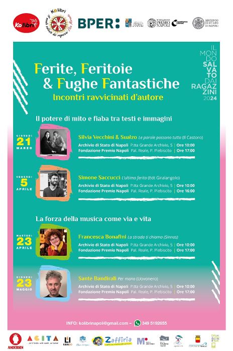 Appuntamento giovedì 21 marzo 2024GIORNATA MONDIALE DELLA POESIA: la mattina con le comunità educanti (dalle ore 10 alle 12 nella Sala Catasti dell’Archivio di Stato di Napoli, “casa delle storie” che accoglierà una novantina tra studenti e docenti dell’IS Casanova coinvolti in un laboratorio);  il pomeriggio, dalle ore 17, in Fondazione Premio Napoli a Palazzo Reale, in un incontro aperto alla città dal titolo «Oltrepassare la soglia: il potere del fantastico nella narrazione per immagini» con i contributi di Mario Punzo, direttore della Scuola Italiana di Comix e dell’artista Daniela Pergreffi, docente di Illustrazione all’Accademia di Belle Arti di Napoli, tra i partner di Kolibrì, con ANDERSEN e altri, nel progetto, sostenuto da BPER banca.