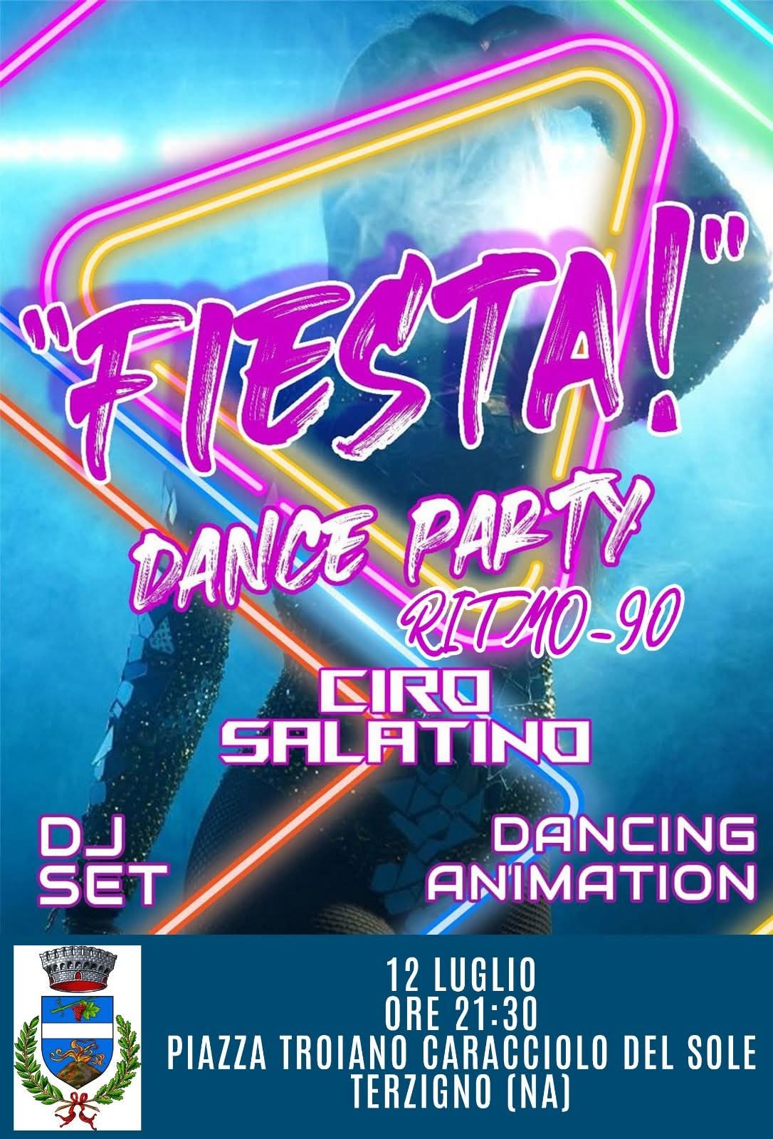 TERZIGNO – Sabato 12 luglio alle ore 21:30, Piazza Troiano Caracciolo del Sole si trasformerà in una vera e propria discoteca a cielo aperto per ospitare “Fiesta! – Dance Party Ritmo 90”, un evento che si preannuncia come uno dei momenti clou dell’estate terzignese.