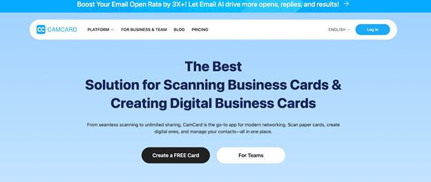 CamCard funziona al meglio quando devi digitalizzare collezioni esistenti di biglietti cartacei, ma è meno focalizzato sulla creazione di una presenza digitale personalizzata. È ideale per professionisti che partecipano a molti eventi in presenza o raccolgono biglietti fisici da contatti internazionali.