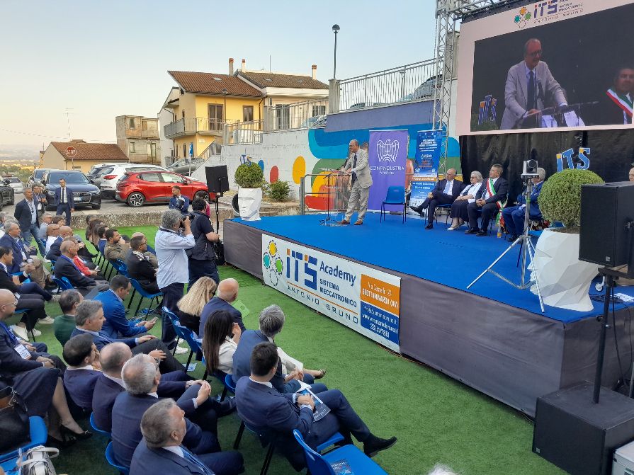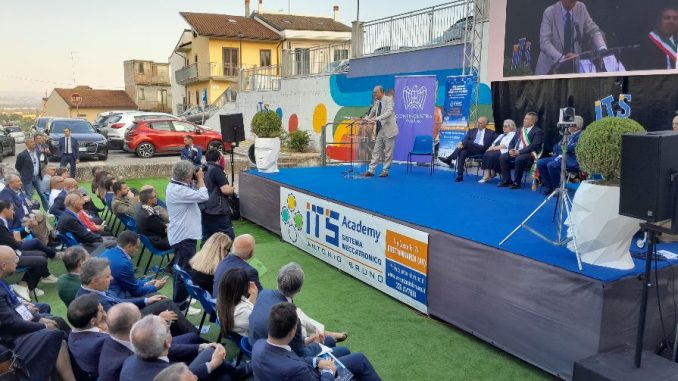 Alla cerimonia era presente anche il Ministro Valditara, e si è tenuta davanti al piazzale dell’ ITS, sito al centro storico di Grottaminarda.