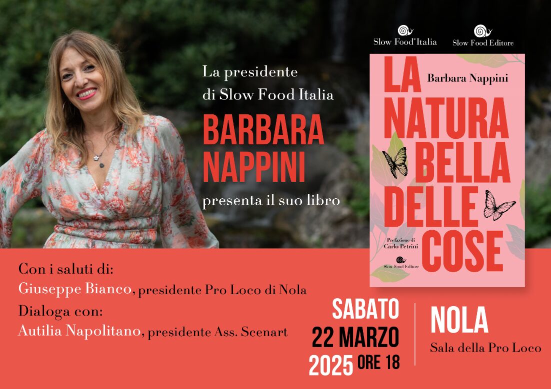 Sarà presentato a Nola il libro di Barbara Nappini, presidente di Slow Food Italia, La natura bella delle cose, un saggio-memoir che racconta come le nostre scelte possano contribuire a cambiare il mondo.