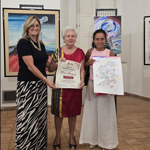 Hanno preso parte all’evento il Presidente del Consiglio Comunale Antonio Casoria e la consigliera Paola Scafuro, che ha portato i saluti istituzionali del Sindaco Rossano Sergio Boglione. Applausi sentiti hanno accompagnato gli interventi della dott.ssa Antonia Solpietro (Ufficio Beni Culturali della Diocesi di Nola) e dell’artista stessa, protagonisti di un confronto ricco di riflessioni, emozioni e sguardi sull’arte contemporanea.