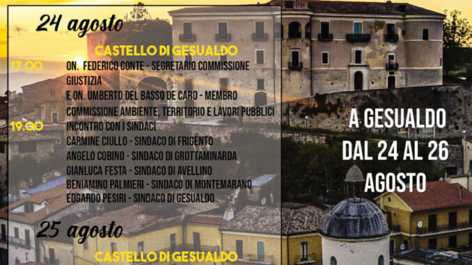 Il giorno seguente, martedì 25 Agosto, dalle 18 ci sarà una tavola rotonda con imprenditori irpini di diversi settori e con le energie locali.