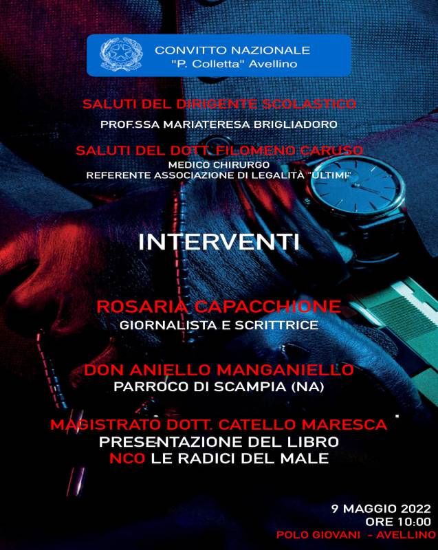 Presso il Polo Giovani della Diocesi di Avellino in via Morelli e Silvati gli studenti e le studentesse della scuola cittadina si confronteranno con il Magistrato Catello Maresca, tra i principali protagonisti dell’arresto del boss dei Casalesi Michele Zagaria, e autore del libro “NCO Le radici del male”, la giornalista e scrittrice Rosaria Capacchione e il parroco di Scampia Don Aniello Manganiello.