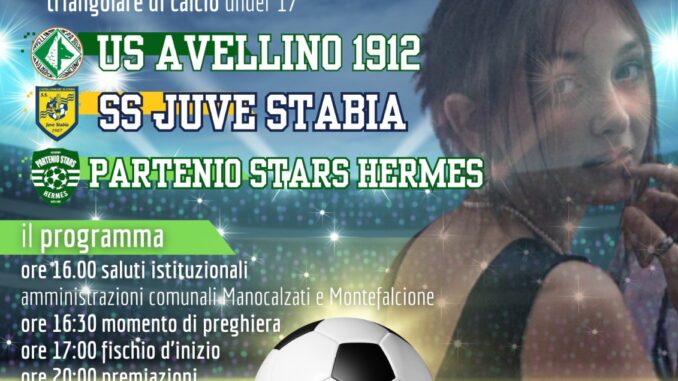 Si svolgerà domani pomeriggio a partire dalle ore 16, nello stadio comunale di Manocalzati, il primo Trofeo Cutillo-Mariantonietta nel cuore. La manifestazione calcistica vedrà la partecipazione delle rappresentative under 17 dell’Us Avellino 1912, della Ss Juve Stabia e della Partenio Stars Hermes, società che hanno organizzato l’evento insieme alla famiglia Cutillo.