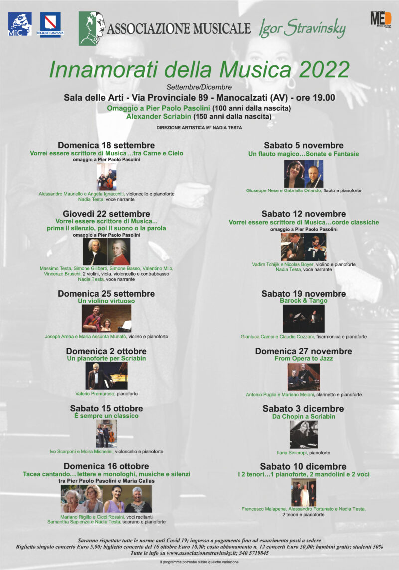 Sabato 5 novembre, alle ore 19,00 nella Sala delle Arti (Via Provinciale 89, Manocalzati, a 200 metri da Progress ad Atripalda), nell’ambito della rassegna autunnale “Innamorati della Musica” dell’Associazione Igor Stravinskyè previsto il concerto del Duo Nese – Orlando (Flauto e Pianoforte).