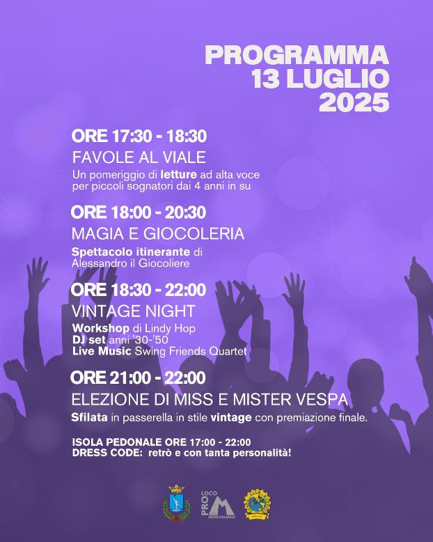 Il programma prevede letture animate per bambini, giocoleria, workshop di lindy hop, musica swing dal vivo e una passerella in stile retrò per celebrare l’identità giocosa e originale dei partecipanti.