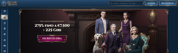 RichRoyal si caratterizza per un catalogo molto vasto, con migliaia di titoli da provider noti come NetEnt, Evolution, Pragmatic Play e Microgaming. Supporta numerosi strumenti di pagamento (carte, e-wallet, criptovalute) e ha un’interfaccia responsive anche da mobile. Non dispone di licenza Gibilterra nota, ma viene spesso valutato con un buon Safety Index.