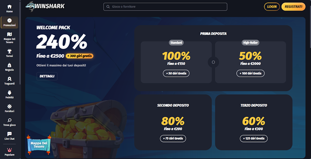 WinShark è riconosciuta per un’offerta ben bilanciata tra slot ad alta varietà tematica, tavoli live e sezioni torneistiche. Anche se non abbiamo trovato una conferma esplicita della licenza Gibilterra, il brand è spesso presente nei mercati internazionali come operatore strutturato e attento alla sicurezza dei dati e dei pagamenti. Offre un’esperienza solida ed è apprezzata per affidabilità generale.