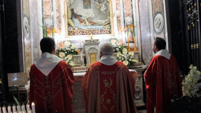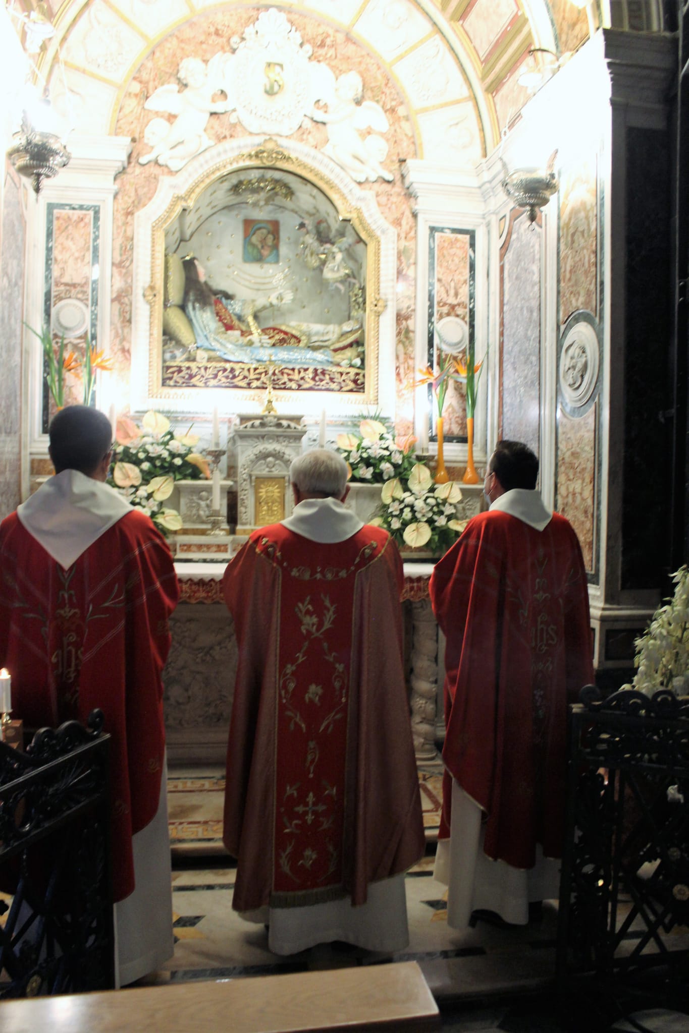 Alle 19 è stata celebrata la Santa Messa dal Vicario Generale don Pasquale Capasso a concelebrare c’erano il Rettore don Giuseppe Autorino e il parroco di Nocera Superiore don Giuseppe Perano. Tanti i fedeli che gremivano il Santuario e che hanno ascoltato don Giuseppe Autorino che ha letto una missiva inviata dal Cardinale Crescenzio Sepe. Il Cardinale avrebbe dovuto presenziare, ma problemi di salute non gli hanno consentito di essere presente. Sua Eminenza nella missiva ha espresso il suo rammarico per il forfait, assicurando la sua preghiera e vicinanza al popolo in questi giorni di festa dedicati a Santa Filomena.