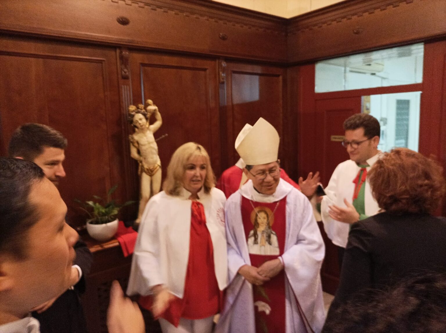 Il Cardinale Tagle fu accolto con calore dal Vescovo Monsignor Francesco Marino, dal Vicario Generale don Pasquale Capasso e dal Rettore don Giuseppe Autorino, oltre che dalle autorità locali e dai tanti pellegrini presenti. Dopo l’omaggio floreale al “Giardino degli Eroi”, presiedette una Messa solenne che provocò la commozione dei presenti per intensità e profondità spirituale. L’omelia, ricca di riferimenti all’amore, alla speranza e alla missione cristiana, sottolineò ancora una volta il legame del Cardinale con la dimensione più viva e popolare della fede.