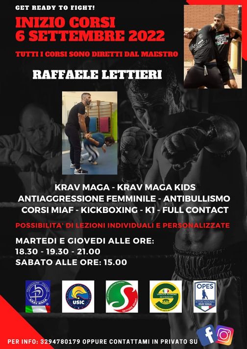 Tutto pronto martedì 6 settembre 2022 iniziano i corsi di Krav Maga tenuti dal maestro Raffaele Lettieri.
