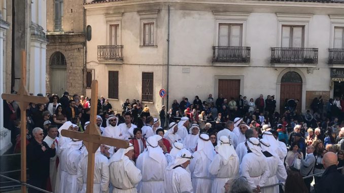 Questa è una tradizione antichissima che prende vita ogni Venerdì Santo. Questo giorno sacro è caratterizzato da un rito unico che coinvolge la comunità locale e affascina i visitatori. I Biancovestiti sono una figura emblematica di questa antica cerimonia. Vestiti con tuniche bianche e coperti da un cappuccio dello stesso colore tenuto stretto sulla fronte da una corona di spine, cingono i fianchi con il cordiglio penitenziale, che rappresenta l’umiltà, e la devozione. Il loro aspetto misterioso e solenne cattura l’attenzione di chiunque assista al rito. i Biancovestiti interpretano le stazioni della Passione di Cristo. Attraverso gesti simbolici e recitazioni sacre, essi trasmettono la sofferenza e la redenzione del Salvatore.