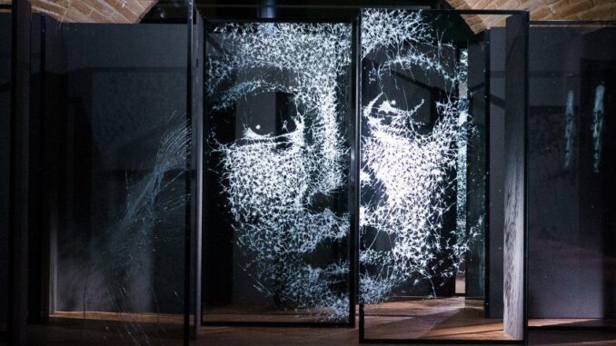 Dapprima ritrattista con bombolette spray, è passato al legno e alla carrozzeria finché l’idea di lavorare il vetro non ha preso forma. Con martello e fratture controllate, imprime volti umani sul vetro di sicurezza: frammenti e crepe catturano la luce, trasformando la superficie in un ritratto “che sembra brillare a seconda dell’illuminazione”.
