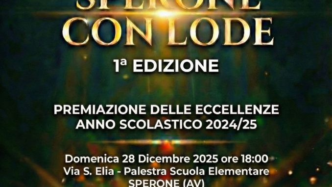 La cerimonia di Premiazione delle Eccellenze si terrà domenica 28 dicembre 2025 alle ore 18:00, presso la Palestra della Scuola Elementare di Via Sant’Elia, a Sperone (AV).