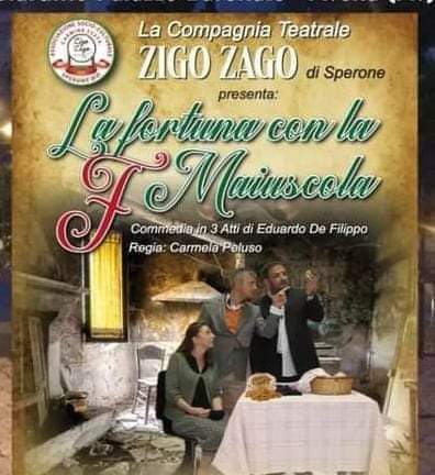 Ieri sera la compagnia teatrale speronese “Zigo Zago” si è esibita a Villa di Briano (CE) con la commedia dal titolo: “La Fortuna con la F Maiuscola”, commedia in tre atti di Eduardo De Filippo con la regia di Carmela Peluso, chiudenda una rassegna teatrale organizzata in loco. Un vero e proprio successo per gli attori teatrali amatoriali mandamentali che hanno strappato scroscianti applausi dalla platea composta da oltre 200 persone che hanno riempito il teatro in ogni angolo.