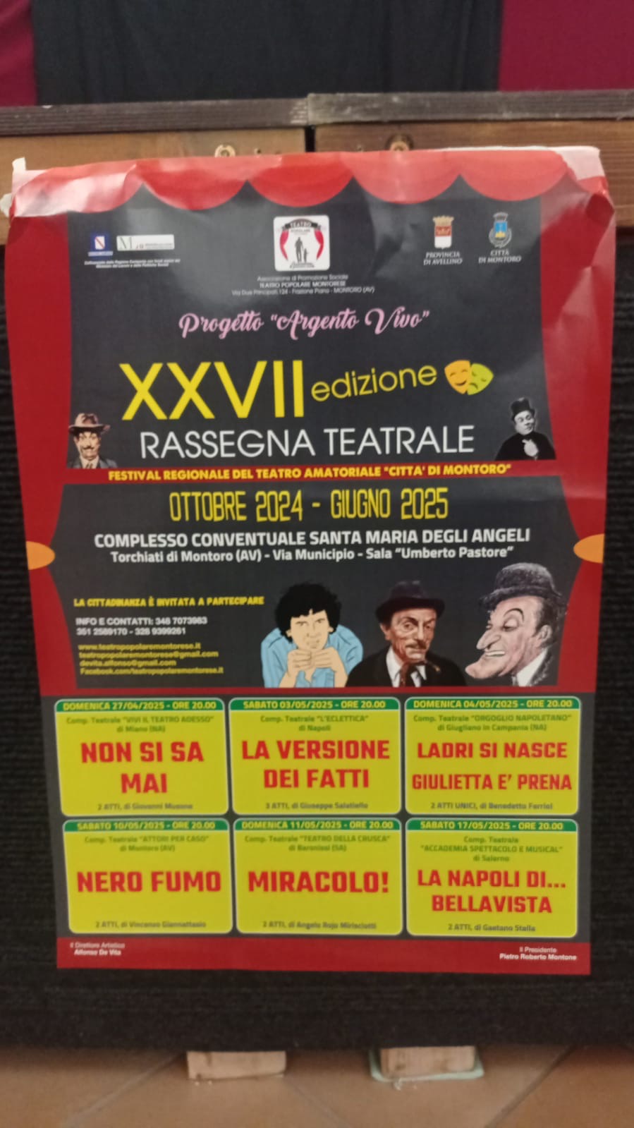 Ieri sera, presso il Complesso Conventuale Santa Maria degli Angeli a Montoro, la compagnia teatrale Zigo Zago di Sperone ha conquistato il pubblico con la brillante commedia “Filomena e Geppino: quando mazzate!”, nell’ambito della XXVII Rassegna Teatrale Amatoriale “Città di Montoro”.