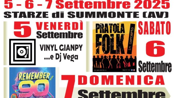 L’atmosfera sarà permeata da musica e spettacoli coinvolgenti: venerdì 5 settembre musica e intrattenimento con Vinil Giampy e Dj Vega. Da non perdere, inoltre, il concerto dei talentuosi “Pratola Folk”, seguiti dall’After Party Dj set “Serate Avellino” sabato 6 settembre, e lo straordinario format “Remember 90” in programma per domenica 7 settembre.