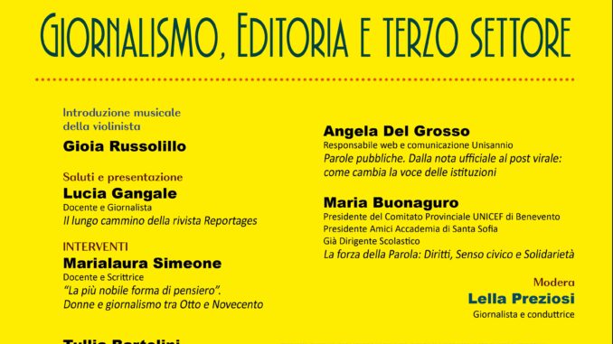 La giornalista Annamaria Gangale interverrà sul tema “L’importanza di scrivere a mano e leggere su carta”, mentre Angela Del Grosso, responsabile comunicazione dell’Università degli Studi del Sannio, tratterà di comunicazione istituzionale nell’era digitale: “Parole pubbliche. Dalla nota ufficiale al post virale: come cambia la voce delle istituzioni”.