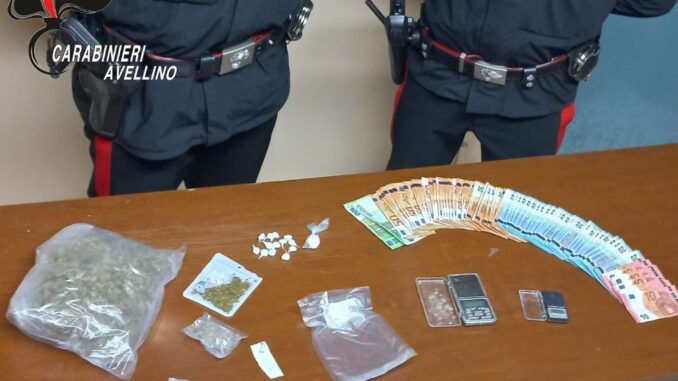 Le successive perquisizioni domiciliari, eseguite con l’ausilio dei colleghi del Nucleo Operativo e Radiomobile della Compagnia di Avellino, hanno permesso di rinvenire e sequestrare complessivamente 40 grammi di cocaina, 256 grammi di marijuana, vario materiale utile per il confezionamento delle dosi nonché oltre 3.000 Euro in contanti, ritenuti provento dell’illecita attività di spaccio. Gli elementi raccolti hanno consentito ai Carabinieri di delineare un coerente quadro indiziario che, d’intesa con la Procura della Repubblica di Avellino, ha portato anche all’arresto della madre del 22enne e del convivente della stessa.