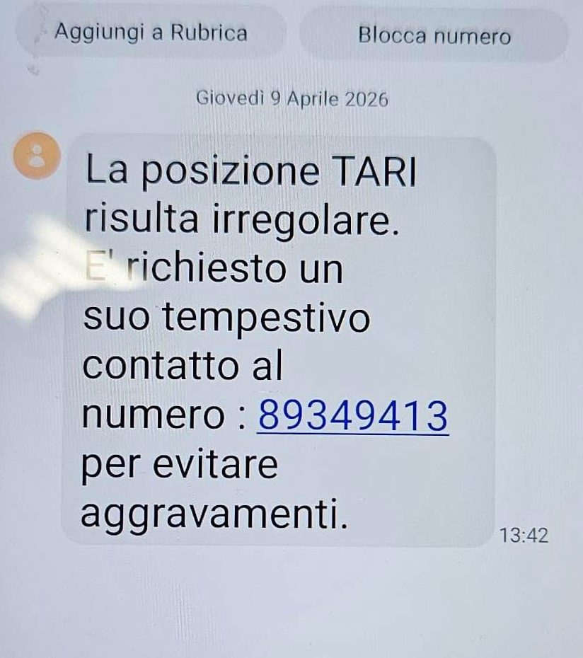 Secondo quanto segnalato, si tratterebbe di tentativi di truffa attraverso i quali vengono richiesti pagamenti o forniti link sospetti. Il Comune precisa che non invia SMS contenenti richieste di pagamento, né invita i cittadini a contattare numeri esterni o sconosciuti.