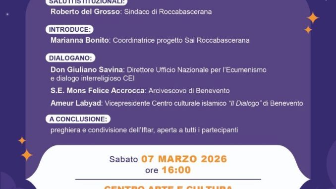 Il dialogo entrerà nel vivo con interventi di alto profilo: S.E. Mons. Felice Accrocca, Arcivescovo di Benevento, e Ameur Labyad, Vicepresidente del Centro culturale islamico “Il Dialogo” di Benevento. Modererà Don Giuliano Savina, Direttore dell’Ufficio Nazionale per l’Ecumenismo e il dialogo interreligioso della CEI.