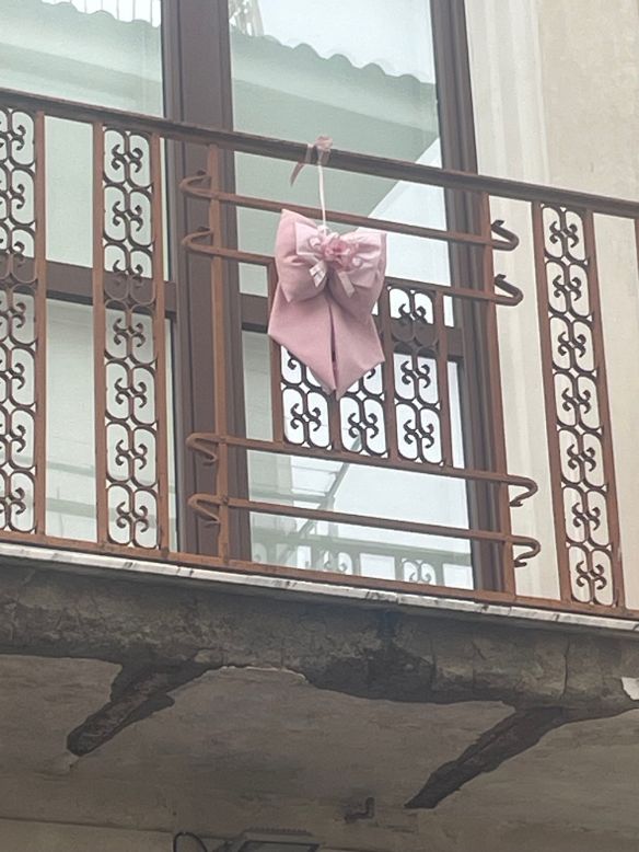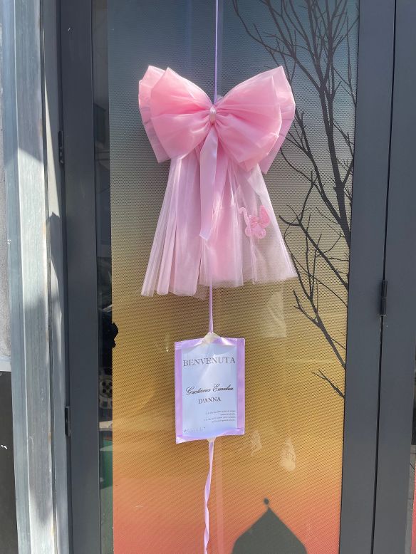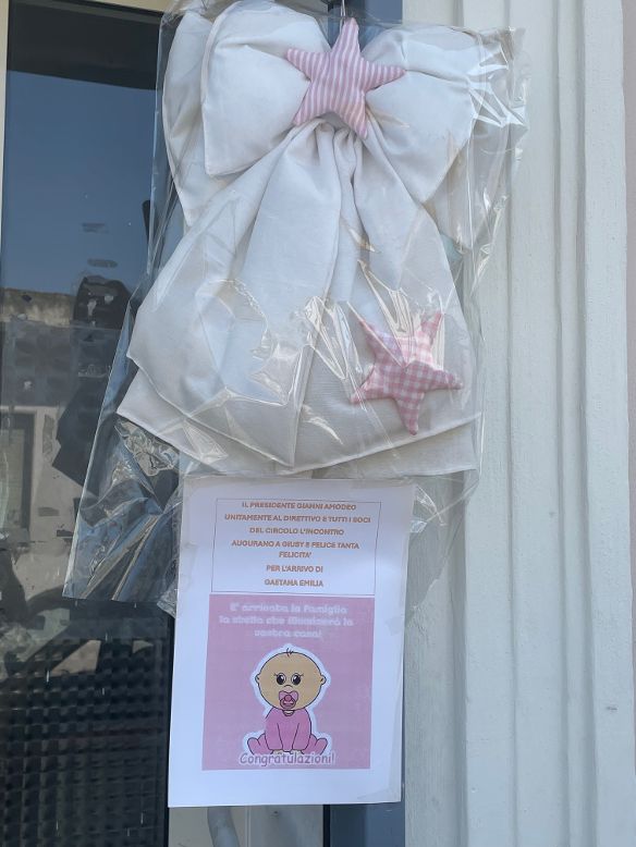 Un  giro d’orizzonte agile e … rapido nel centro storico, tra via Armando Diaz, piazza IV Novembre, via Luigi Napolitano e corso Garibaldi, ed ecco confezionato il ventaglio delle foto, su cui campeggiano i tradizionali fiocchi color rosa con decori in bianco, per salutare l’arrivo di Gaetana Emilia nella piccola comunità cittadina, con l’annuncio di cordiale accoglienza e benvenuta.