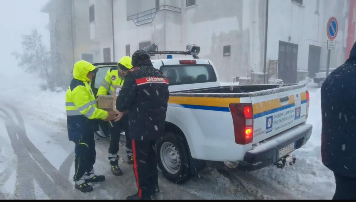 Il conduce non riuscendo a raggiungere le abitazioni nel centro storico a causa della troppa neve, ha chiesto aiuto ai Carabinieri i quali si sono subito attivati con la protezione civile affinché i farmaci fossero trasbordati su un mezzo idoneo e consegnati agli anziani.
