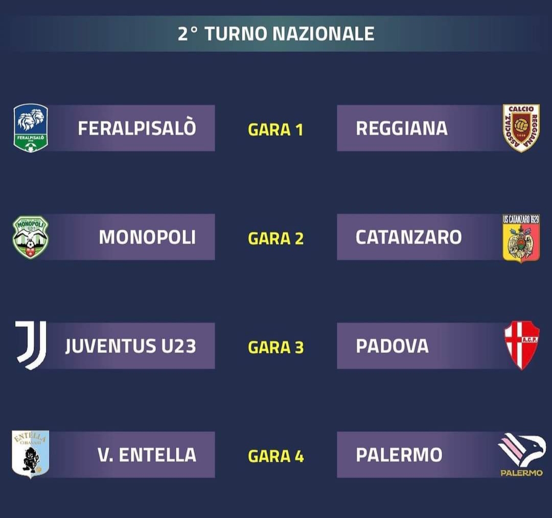 Ecco gli accoppiamenti dei quarti di finale dei playoff di Serie C. Entrano in gioco le teste di serie Padova, Reggiana e Catanzaro. Miglior coefficiente tra le qualificate dei precedenti turni per il Palermo, altra testa di serie, eliminata la Triestina. Si contenderanno l’ultimo posto per la B anche la Virtus Entella che ha avuto la meglio sul Foggia, la Feralpi Salò, carnefice del Pescara, il Monopoli, colpaccio a Cesena e la Juventus Under 23, piegato il Renate. Le gare di andata si giocheranno il 17 maggio, quelle di ritorno il 21. I sorteggi sono stati effettuati alle 9,30.
