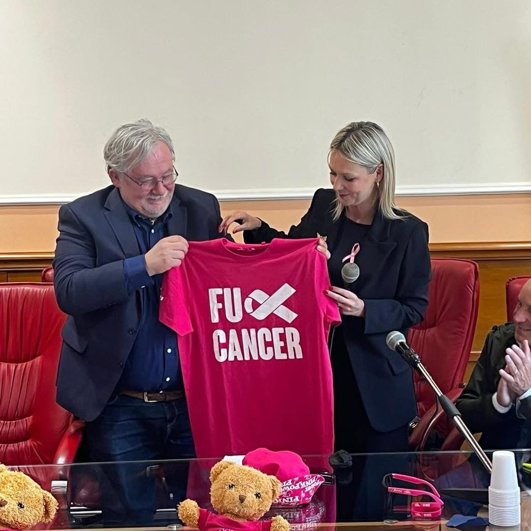 Avellino – Una mattinata di emozioni forti e simboli che parlano al cuore. Il sindaco di Avellino, Laura Nargi, ha ricevuto dalle mani del dottor Carlo Iannace la prima maglia ufficiale dell’undicesima edizione della Camminata Rosa, appuntamento diventato emblema di sensibilizzazione alla prevenzione oncologica e della forza della rete solidale che attraversa l’Irpinia.
