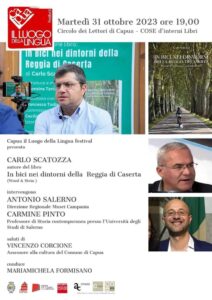 Martedì 31 ottobre. alle ore 19.00 a Capua, in occasione dell’evento “Il Luogo della Lingua Festival”, sarà presentato il libro del giornalista Carlo Scatozza “ In Bici nei dintorni della Reggia di Caserta, racconti di cicloturismo, con girogustando”.