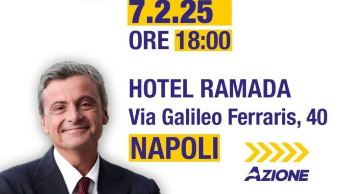 Venerdì 7 febbraio , il Segretario Nazionale di Azione, Carlo Calenda, sarà a Napoli per un incontro pubblico con iscritti, simpatizzanti e cittadini. L’appuntamento, che si terrà alle ore 18:00 presso l’Hotel Ramada (via Galileo Ferraris, 40), sarà un’occasione di dialogo aperto per discutere delle sfide politiche del Paese e del percorso congressuale di Azione.