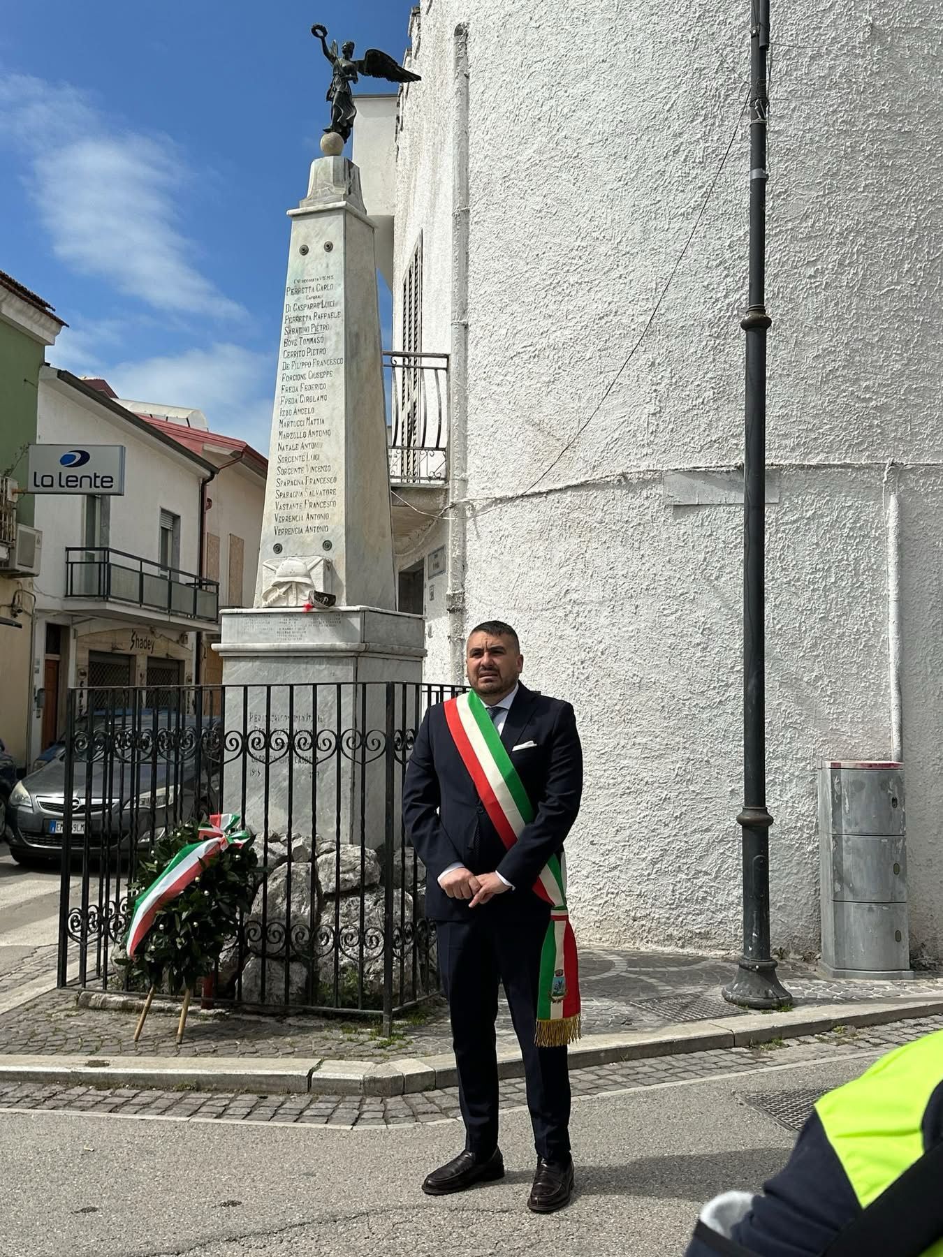 Le celebrazioni si sono svolte nella villa comunale intitolata alla medaglia d’oro al valor militare Vincenzo Ciaravolo, dove è stata deposta una corona d’alloro in memoria dei caduti. La comunità ha partecipato con commozione, unendo il ricordo del passato alla speranza per un futuro di pace e solidarietà.