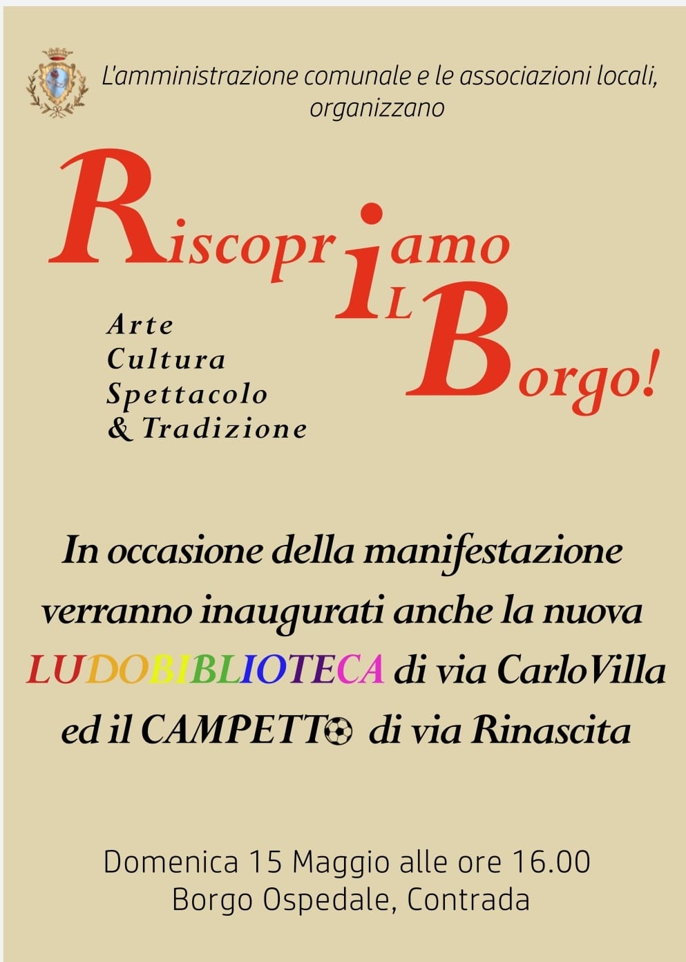 Nell’ ambito della Manifestazione Riscopriamo il Borgo l’ Amministrazione Comunale di Contrada e le Associazioni locali Domenica 15 Maggio c.a alle ore16.00 inaugureranno la Nuova LudoBiblioteca Comunale ed il Campetto di Calcio di via Rinascita. Si prevede la presenza del Primo Cittadino De Santis e di diverse autorità politiche, scolastiche e religiose. Continuano senza sosta le opere di ammodernamento del Comune alle falde del Monte Faliesi, e questo ulteriore tassello mostra ancora una volta a chiare lettere la convinta attenzione dell’attuale amministrazione anche verso il mondo della cultura, della scuola e dello sport. Daniele Biondi