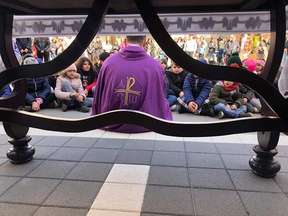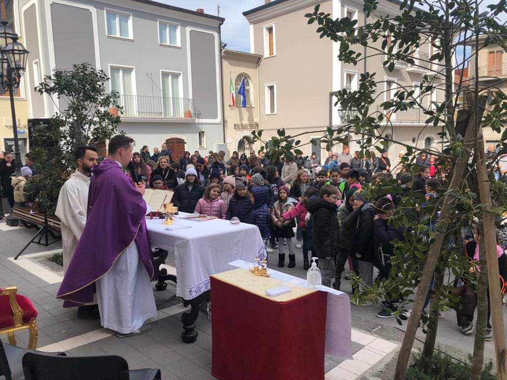 Ed ancora Grazie al nostro Don Ovidiu che grazie ad una sua illuminata idea del , gli studenti del plesso scolastico “Ammaturo” di Contrada, accompagnati dai genitori e dalle loro insegnanti, hanno celebrato in Piazza Del Carmine il precetto Pasquale.