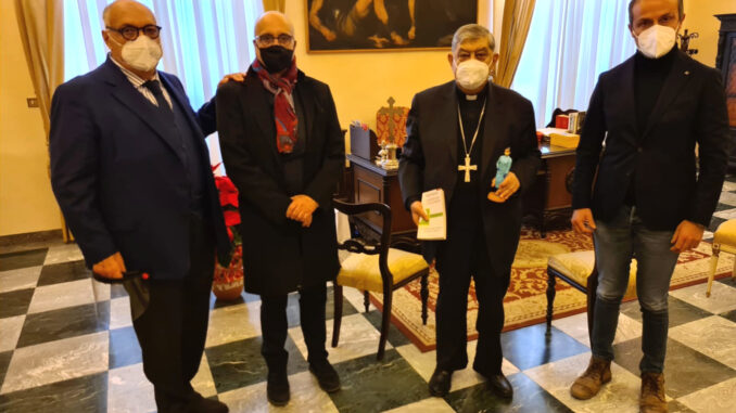 Una statuetta “infermiera” per ringraziare il personale sanitario nella lunga lotta al Covid-19. È il dono per il presepe della Diocesi di Napoli che è stato consegnato all’arcivescovo della città, cardinale Crescenzio Sepe, dal vicepresidente nazionale di Coldiretti Gennarino Masiello, dal direttore di Coldiretti Campania Salvatore Loffreda e dal presidente di Confartigianato Napoli Enrico Inferrera. La statuina è stata realizzata dalla bottega artigianale La Scarabattola dei fratelli Scuotto, storico laboratorio di arte presepiale nel cuore antico di Napoli. Insieme alla statuina Coldiretti ha voluto donare al cardinale Sepe la pubblicazione “La gente dei campi e il sogno di Bonomi”, curata da Nunzio Primavera, che ripercorre la storia dell’organizzazione a cui era profondamente legato il padre dell’arcivescovo, agricoltore dell’agro aversano. Il presidente Masiello e il direttore Loffreda hanno voluto ringraziare il cardinale Sepe per i lunghi anni di collaborazione, nei quali non è mai mancata l’attenzione verso il mondo agricolo, condividendo le gioie e i momenti difficili.