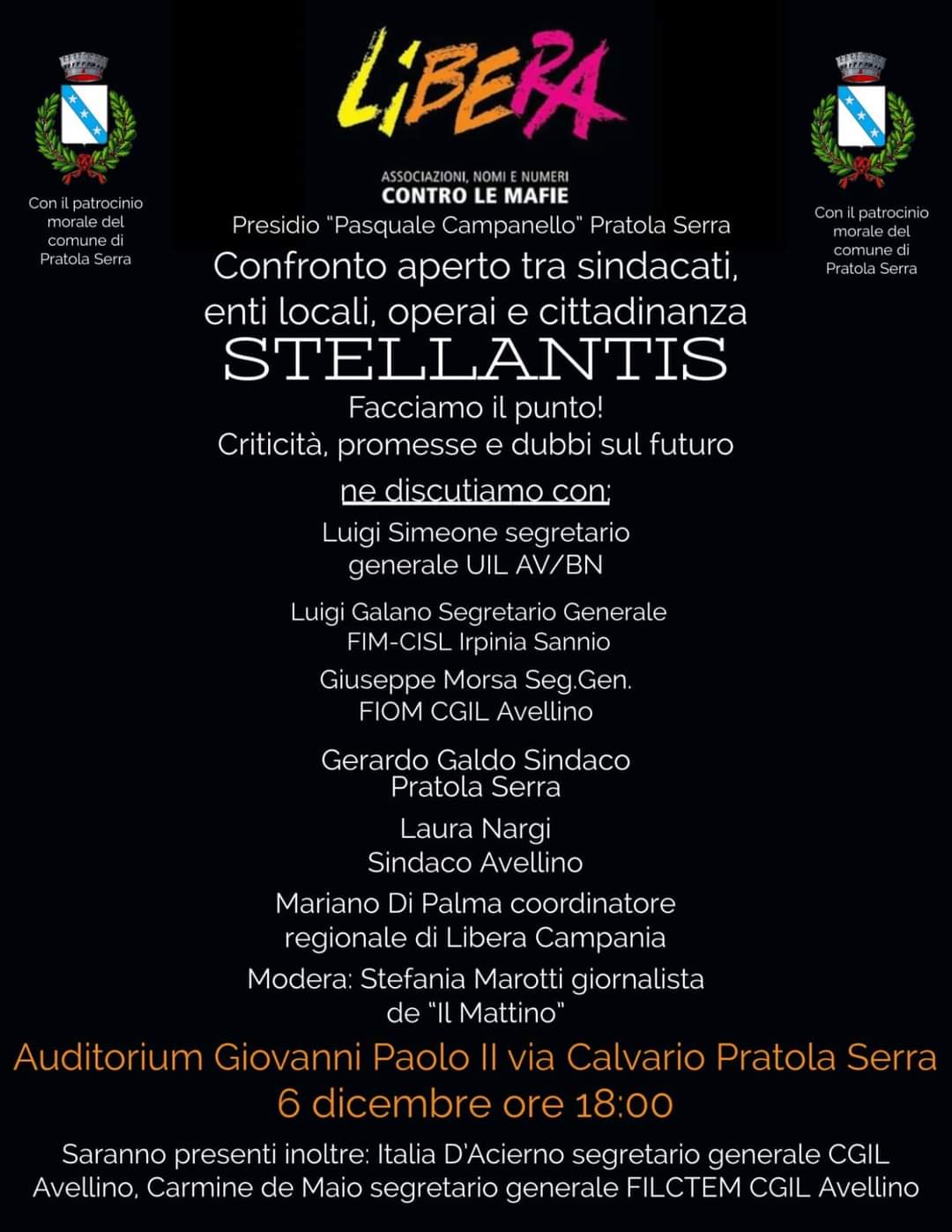 La crisi del settore automotive ha messo a rischio decine di migliaia di posti di lavoro in tutta Europa. Non fa eccezione Stellantis, la cui già precaria situazione è stata recentemente acuita dalle dimissioni dell’AD Carlos Tavares. Di questo e delle problematiche del comparto auto europeo si discuterà venerdì 6 dicembre, alle ore 18:00, presso l’auditorium “Giovanni Paolo II” di Pratola Serra, comune sede di uno dei più importanti stabilimenti produttivi di Stellantis con circa 1700 dipendenti. Il meeting è stato proposto dal Presidio Libera “Pasquale Campanello”, con il patrocinio morale del comune di Pratola Serra. All’ incontro interverranno