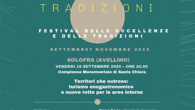 Eccellenze e Tradizioni” fa tappa a SolofraDomani (venerdì 19 settembre) in occasione della rassegna “Indivino”, si terrà l’incontro sul tema “Territori che nutrono: turismo enogastronomico e nuove rotte per le aree interne”, all’interno del cartellone “Festival delle eccellenze e delle tradizioni”, programma di eventi promosso dalla Regione Campania.
