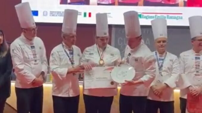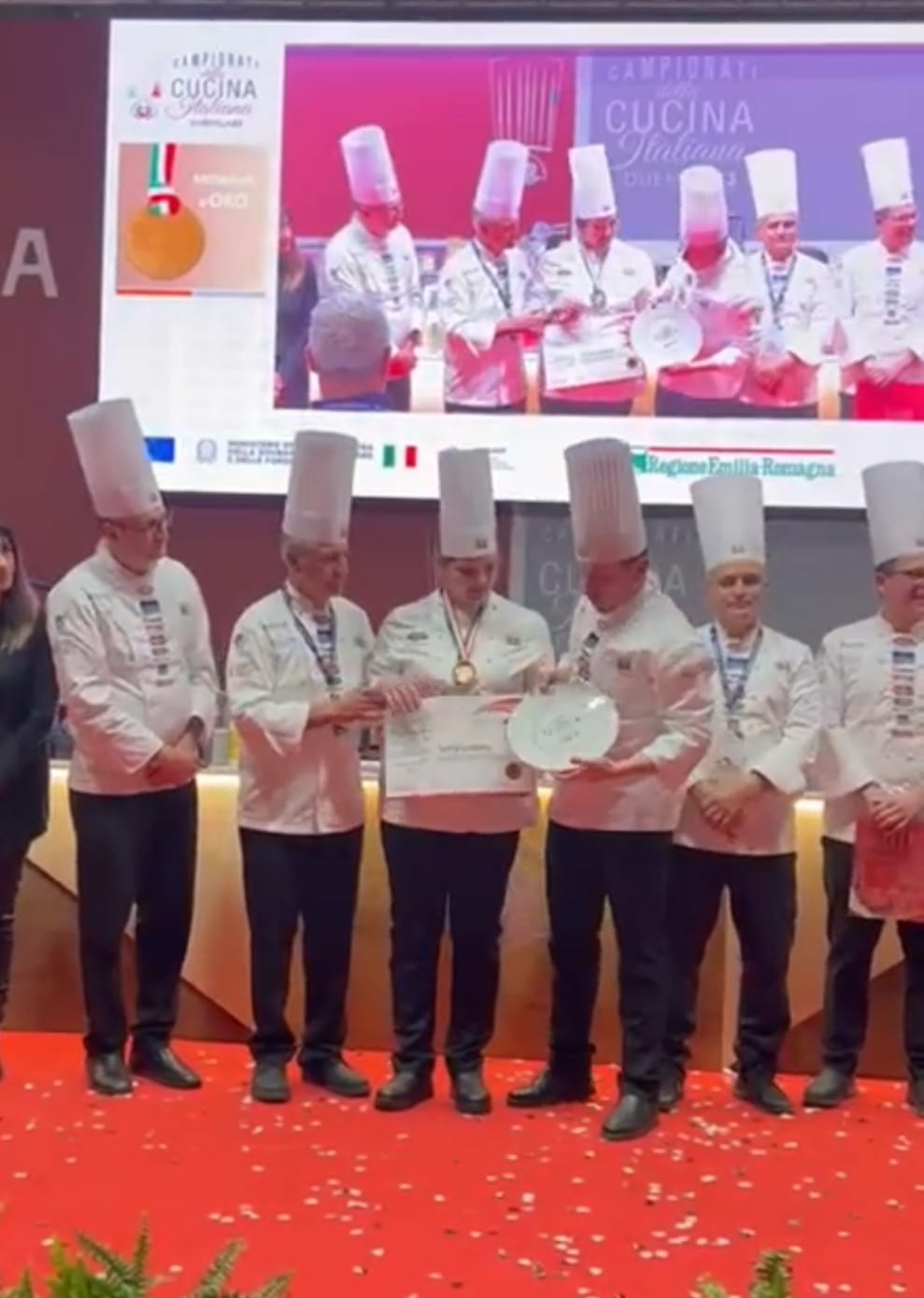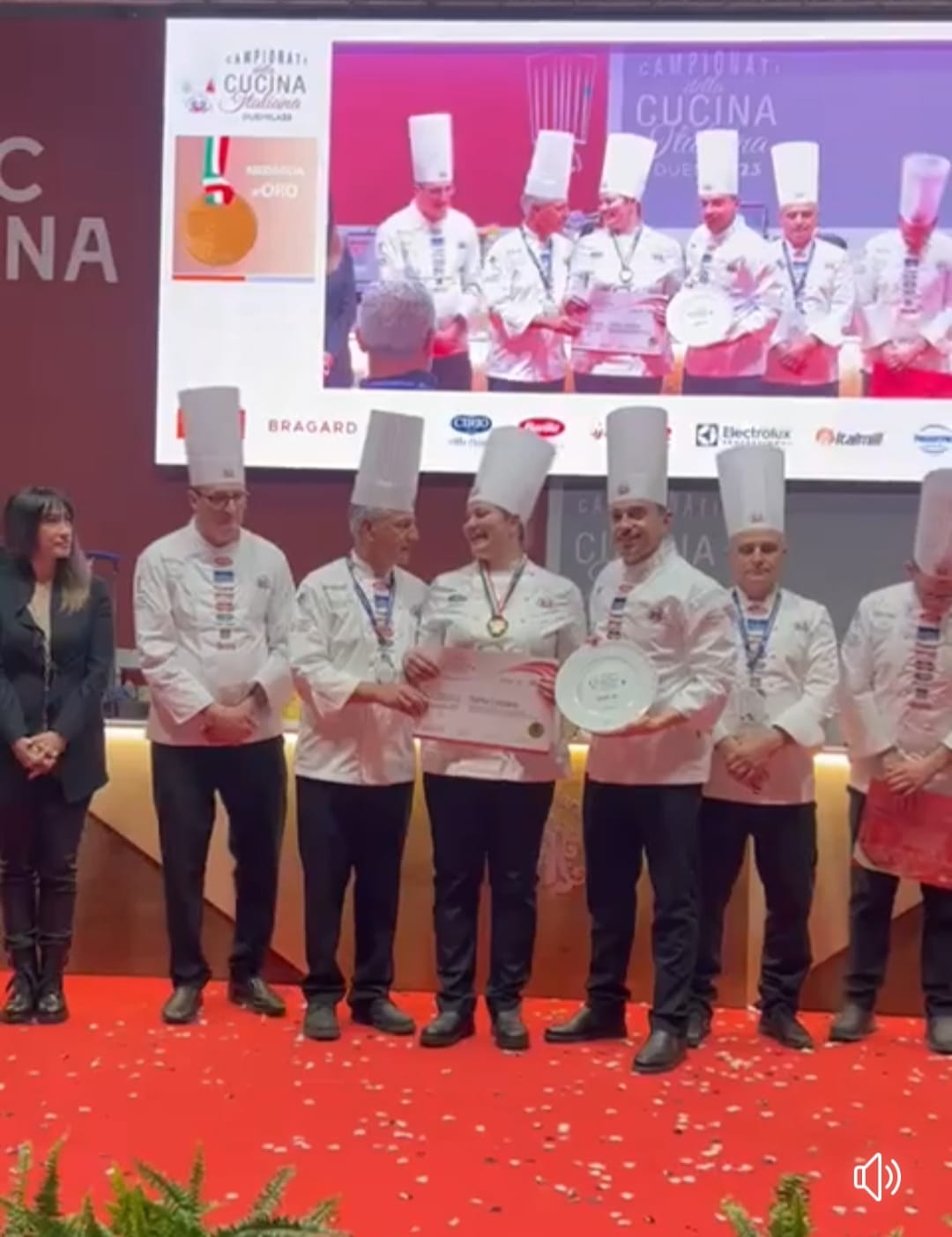 Forino sul tetto d’ Italia ai Campionati Nazionali di Cucina grazie Lady Chef Sonia Luciano . Non poteva andare meglio alla Chef della Città dei Sette Colli, la quale dopo lo strepitoso primo posto ottenuto al Concorso Regionale il primo febbraio, si è ritrovata in questa finalissima a contendersi l’ iridato titolo con tanti altri Chef provenienti da tutte le regioni italiane. Un sogno che parte da molto lontano , pensato, studiato , preparato con la Grande Famiglia del Mousse Art del valente Chef Federico Della Cerra con dispendio di forze materiali ed economiche. Prove fatte, rifatte e rifatte ancora. Crepuscoli ed ore notturne dove nel silenzio, nella totale quiete e meticolosa concentrazione si è visto e rivisto il lavoro, la portata culinaria da dove proporre al Gotha dei Concorsi di Cucina italiana vale a dire il Campionato Nazionale dove la severa valutazione è stata tra le mani dei migliori Chef della Federazione Italiana Cuochi organizzatrice di tutto. Un Pathos che ha accompagnato la Lady Luciano, il Mousse Art e lo Chef Federico Della Cerra che gli è stato sempre accanto in questi giorni ed il quale come tenne a ribadire in una dichiarazione ” Come Mousse Art, Sonia è il nostro orgoglio, il mio orgoglio. Il nostro Sogno già è stato realizzato. Vale a dire quello di essere a Rimini in questa finale. Sonia ha già fatto qualcosa di fantastico e mai fatto e capitato prima di questo momento a Forino. “Ora però il fantastico è diventato Meraviglioso, e questa medaglia d’oro della Lady Chef Sonia Luciano, prima tra le Lady Chef di tutta Italia, brillerà ad imperituro ricordo nelle lise pieghe della Storia di Forino. Daniele Biondi