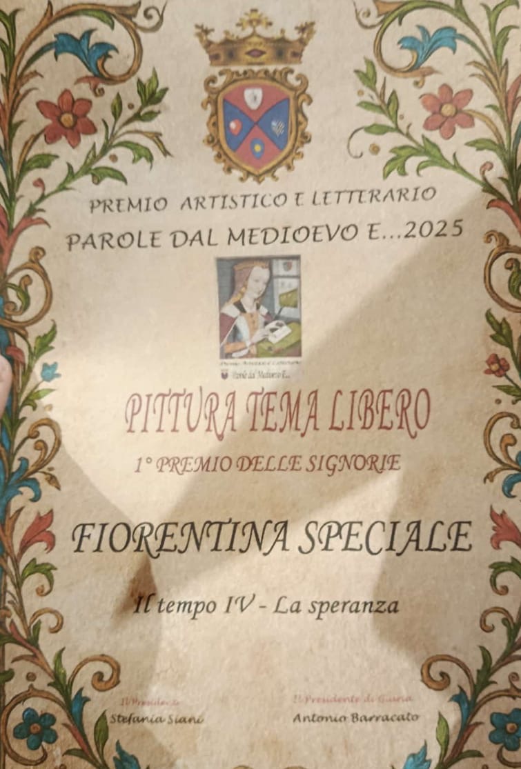 È ormai che da alcuni anni Rocca San Felice cittadina in Provincia di Avellino, nota per la celeberrima ” Mefite ” e non solo , diventa protagonista per un importante Premio Artistico e Letterario dal titolo “Parole dal Medioevo” organizzato dall’Associazione storico culturale “Artisti e Mercanti del Conte Ruggero” il cui Presidente di Giuria in questa edizione è stato dott. Antonio Barracato. Un premio che quest’ anno ha avuto nel suo intento quello di valorizzare opere legate al mondo medievale. In particolare il Concorso e’ stato dedicato a una figura straordinaria del Medioevo: Santa Caterina da Siena , mistica, teologa e voce potente del suo tempo. Tra i suoi partecipanti e diremo protagonisti, ha spiccato una cittadina di Forino, ovvero la Pittrice Fiorentina Speciale la quale, sbaragliando la Concorrenza di tanti artisti provenienti anche da altre Regioni, si è aggiudicata il prestigiosissimo Primo Premio delle Signorie Pittura a Tema Libero. Una gran bella soddisfazione sia per