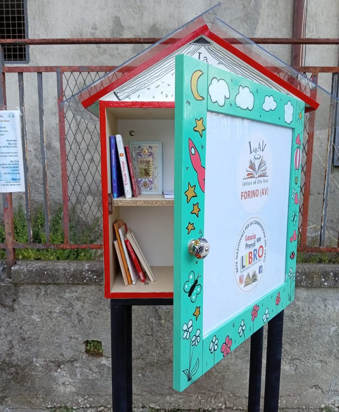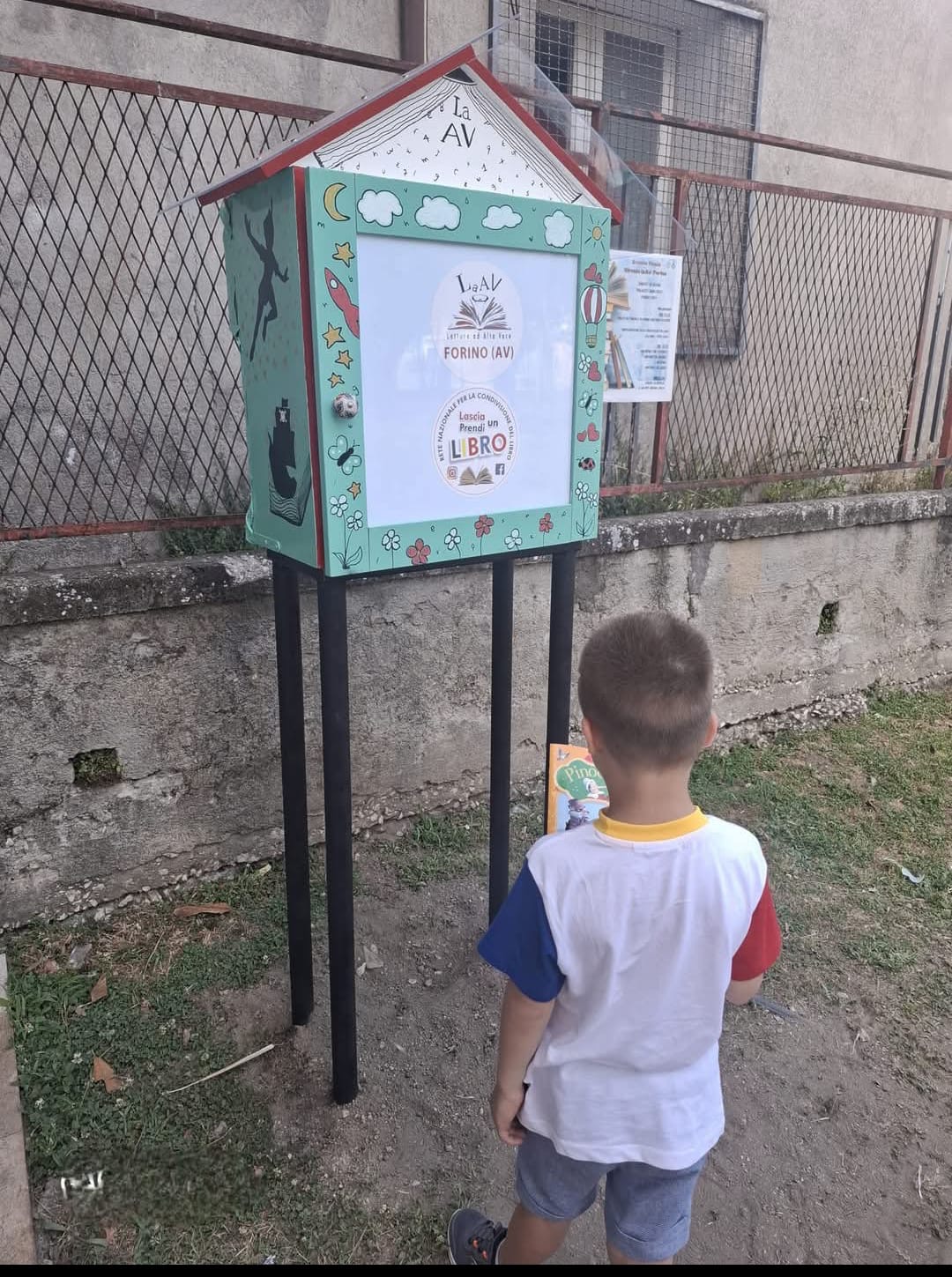 Una nuova e bella iniziativa dedicata alla cultura da qualche giorno è nata a Forino . Infatti Sabato 14 Giugno c.a è stata installata presso la Villa Comunale, la prima ” Bibliocasetta” cittadina interamente costruita e gestita dai volontari e dal Circolo LaaV Forino. Si tratta di una piccola libreria gratuita la quale mette a disposizione di tutti i cittadini libri di vario genere, donati stesso dai cittadini trasformando un angolo verde di Forino in un punto di incontro per gli amanti della lettura. Chiunque può prendere un Libro lasciarne un altro , leggerlo sul posto o semplicemente donare volumi per arricchire la raccolta. Dunque un simbolo di condivisione, amore per la cultura la Bibliocassetta di Forino la quale donerà l’ opportunità di scoprire nuove letture con una nuova prospettiva di guardare la cultura e la sua importanza. Da. BioForino ( Av): Nasce la Prima Bibliocasetta cittadina grazie al Circolo LaaV Forino Forino ( Av): Nasce la Prima Bibliocasetta cittadina grazie al Circolo LaaV Forino Forino ( Av): Nasce la Prima Bibliocasetta cittadina grazie al Circolo LaaV Forino