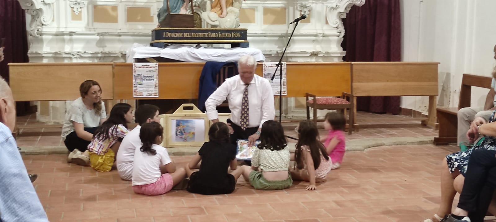 “Un grande sorriso”. È quanto basta”, è l’auspicio finale dell’autore. La serata di ieri ha preso il via con Raffaele Basile presidente dell’Associazione Prospettive che ha presentato l’autore Nello Colombo ricordando che è tra l’altro autore dell’inno di San Nicola che commuove ancora tanti che affollato la discesa del Patrono dal colle. È toccato poi a Rosalia Spolverino, vice presidente di Prospettive, entrare nel dettaglio delle finalità precipue della lettura ad alta voce guidando le immagini delle fiabe presentate con lo scorrere delle immagini sul kamishibai, un teatrino mobile. Nello Colombo si è circondato infine del sorriso dei bambini per raccontare due storie ‘forinesi’: Il fantasmino Ubuntu, e Il gatto e il riccio. I piccoli si sono divertiti a seguire le avventure degli strani protagonisti delle due fiabe. Un momento di grande condivisione tra piccini e grandi che attraverso il mondo delle fiabe hanno riscoperto il valore della narrazione partecipata. Atmosfera gioiosa e serena. Tale presentazione è stata Patrocinata dalla Parrocchia Santi Biagio e Stefano e dall’ Associazione Culturale Prospettive. Daniele Biondi